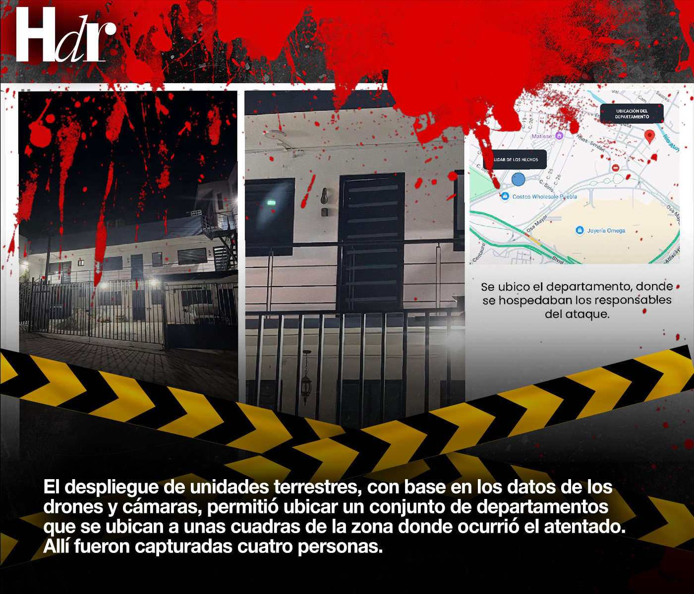 Por aire, explicó, se dispuso de un helicóptero y desplegaron drones con cámaras geotérmicas. Esta tecnología permitió identificar de inmediato las motocicletas en que se trasladaron los presuntos sicarios, así como dar con su ubicación: un departamento, cuyo edificio se encuentra cercano al sitio de la tragedia.