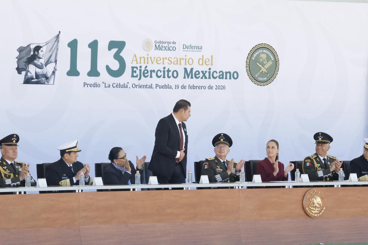 El gobernador del Estado de Puebla, Alejandro Armenta Mier, participó en la conmemoración del 113 Aniversario del Día del Ejército Mexicano, que encabezó desde Puebla la presidenta Claudia Sheinbaum, como Comandanta Suprema de las Fuerzas Armadas, desde el municipio de Oriental, perteneciente a la sierra nororiental.