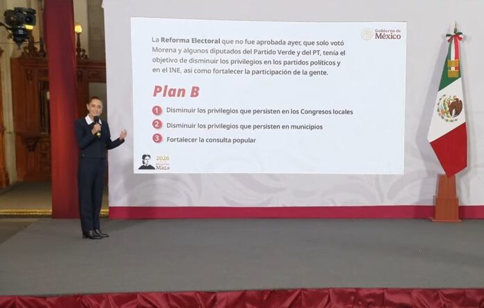 La presidenta de México, Claudia Sheinbaum, presentó su Plan B de reforma electoral con el objetivo de reducir el gasto público en congresos locales, ayuntamientos y organismos políticos, luego de que su propuesta constitucional fuera rechazada en la Cámara de Diputados de México.